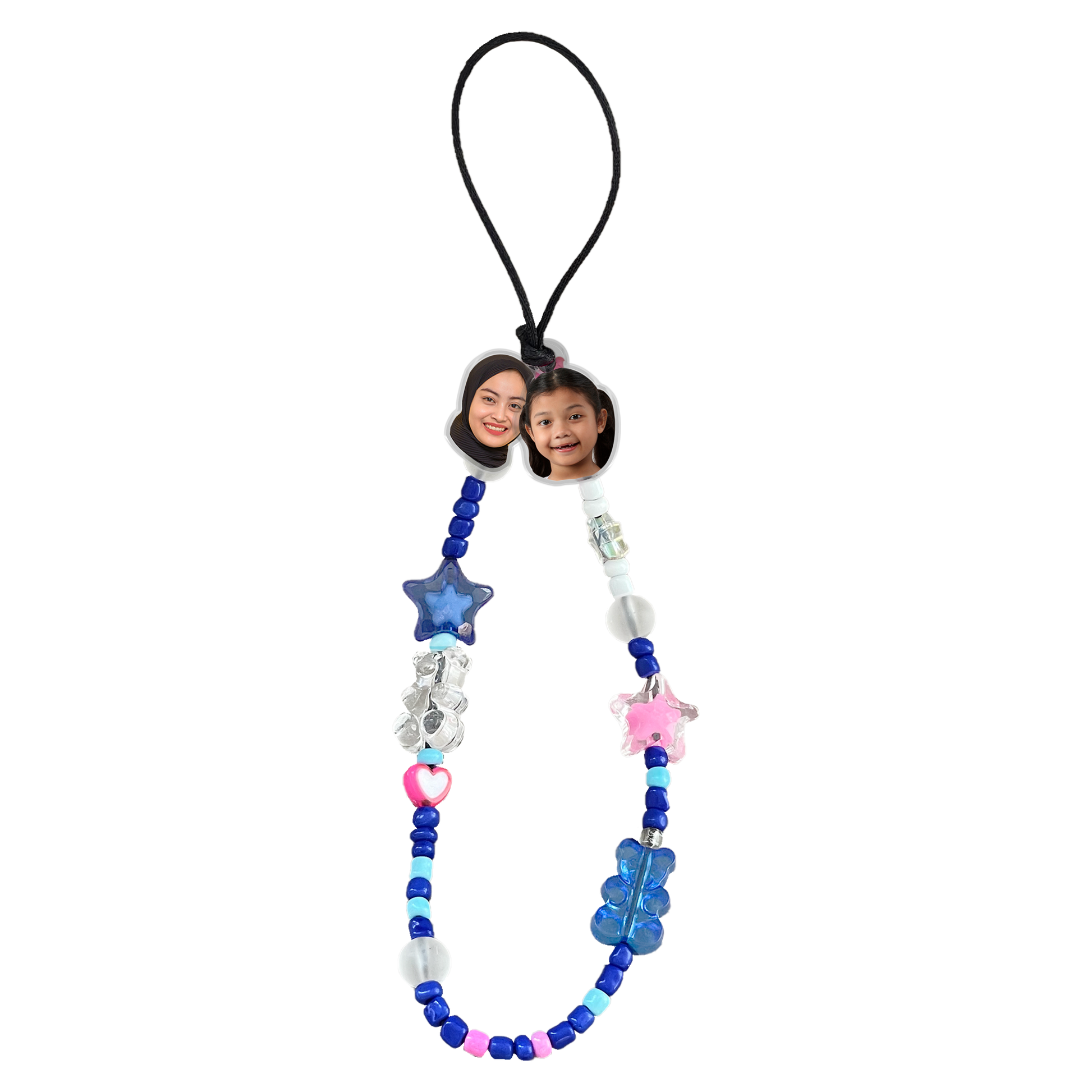 Beaded Strap with Acrylic Charm - Face Grid Pink Royal Blue