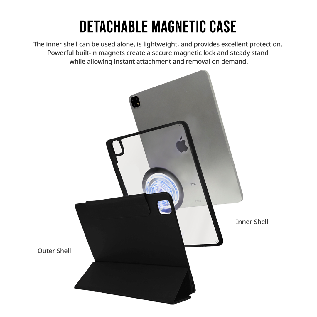 غطاء iPad قابل للفصل. نعم، يمكنك فصل الغطاء وإعادة تركيبه عند الحاجة. مثالي لمشاهدة نتفليكس، أو للعروض التقديمية، أو للعمل.