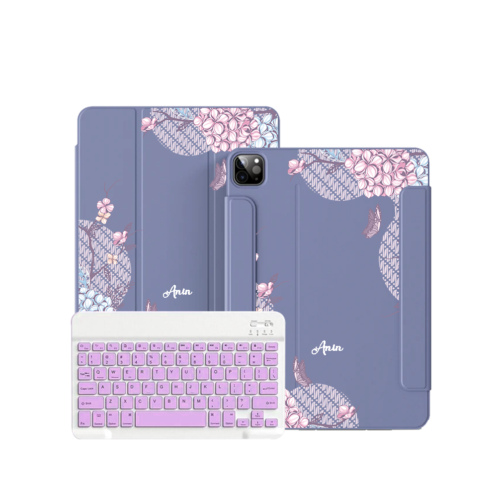 غطاء قابل للطي بلوحة مفاتيح لاسلكية لأجهزة iPad / Android Tab - باتيك زهري