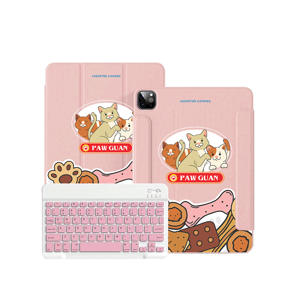 غطاء قابل للطي بلوحة مفاتيح لاسلكية لأجهزة iPad / Android Tab - Paw Guan Cat