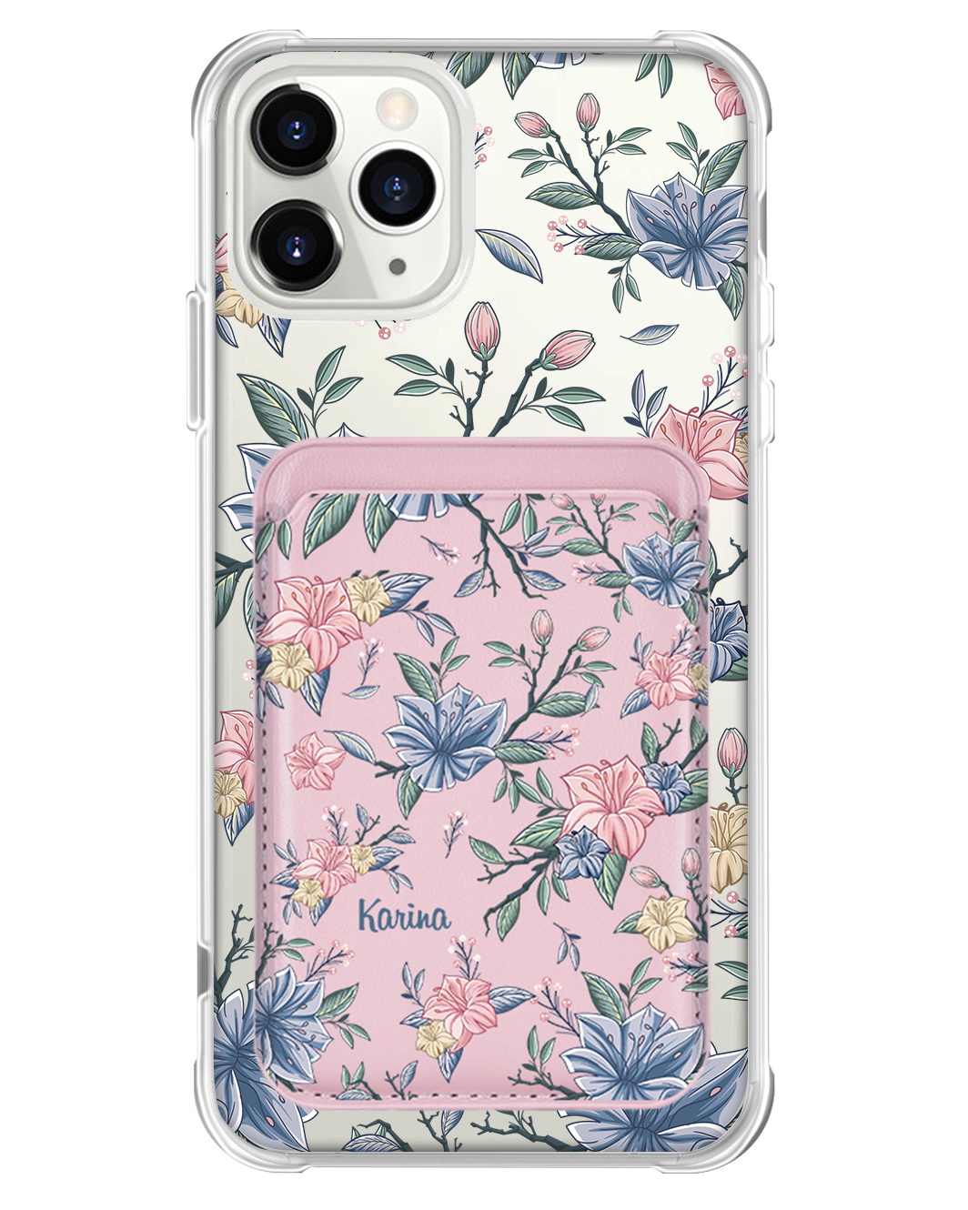 حافظة مغناطيسية لهاتف iPhone - زهور وردية وزرقاء