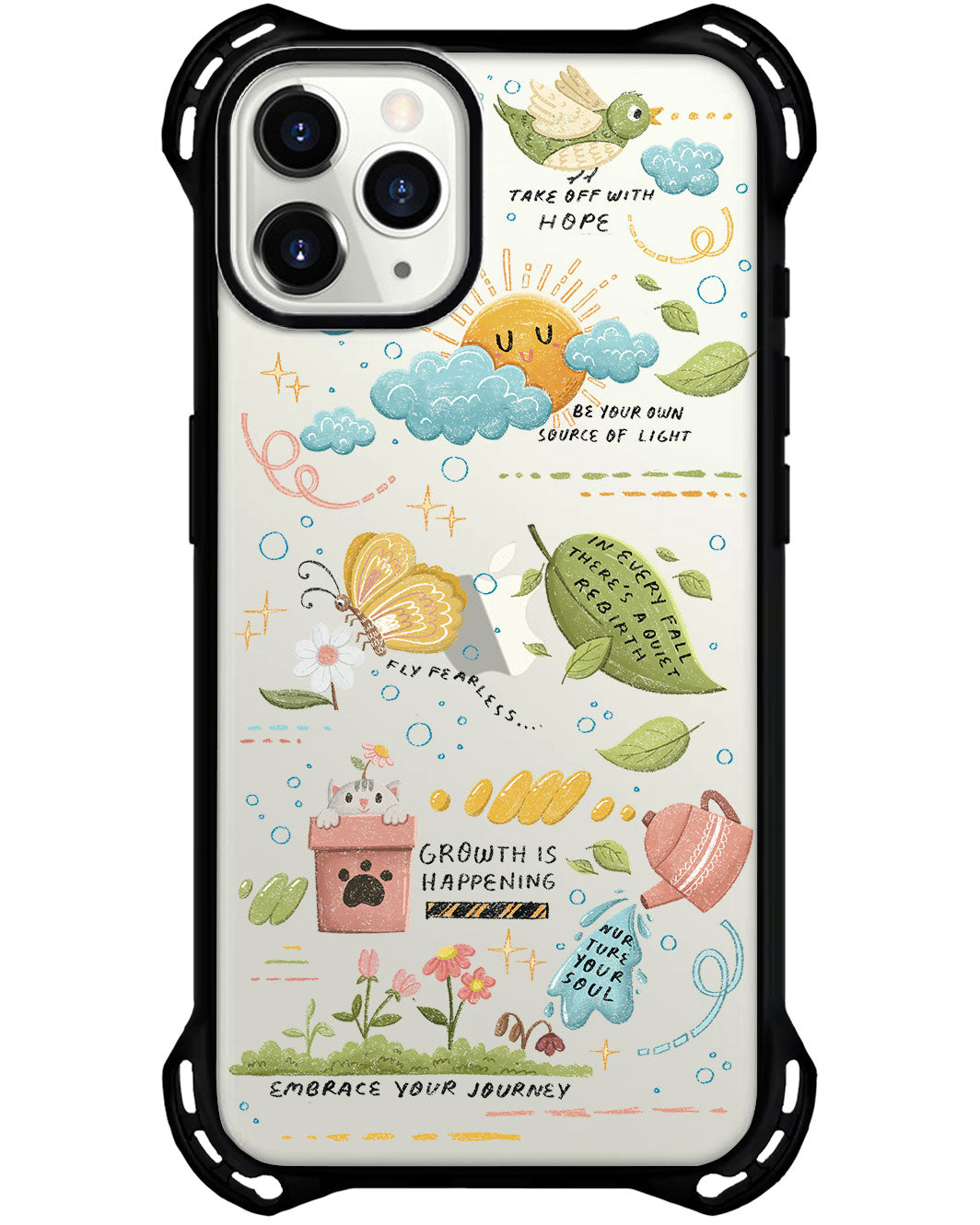 مصدات رائعة في كل زاوية من زواياها الأربع تحميها من السقوط من ارتفاع يصل إلى 5 أمتار! كما أنها معززة بحلقة كاميرا معدنية تحمي عدسات كاميرا آيفون من الخدش. ليس هذا فحسب، بل إن الجزء السفلي من الجراب مُجهز ليتمكن المستخدمون من تعليق سلاسل أو قلادات الهاتف بسهولة.