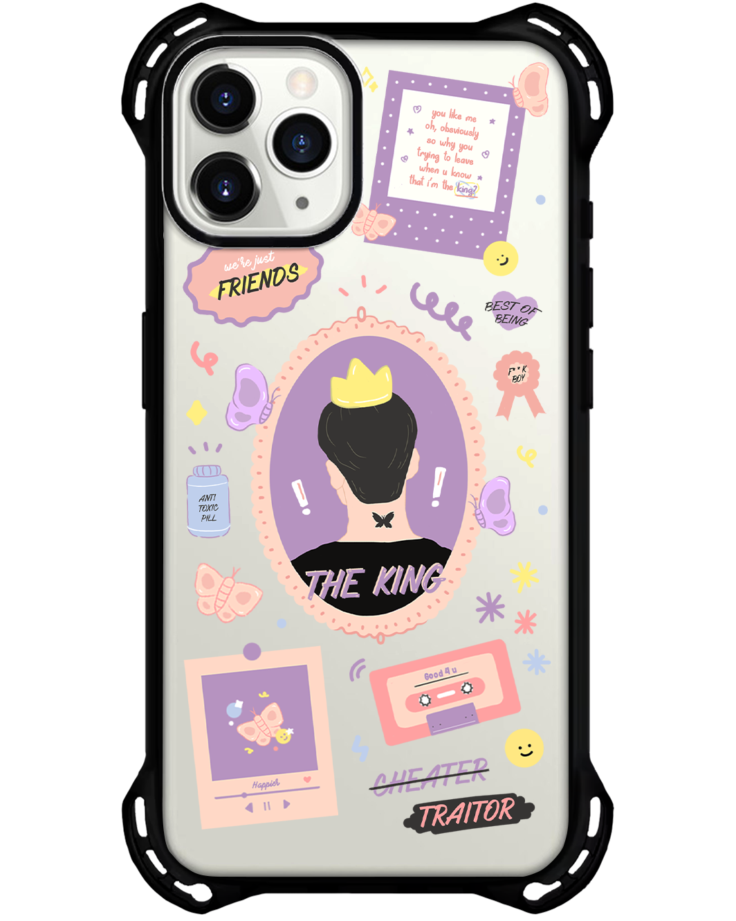 مصدات رائعة في كل زاوية من زواياها الأربع تحميها من السقوط من ارتفاع يصل إلى 5 أمتار! كما أنها معززة بحلقة كاميرا معدنية تحمي عدسات كاميرا آيفون من الخدش. ليس هذا فحسب، بل إن الجزء السفلي من الجراب مُجهز ليتمكن المستخدمون من تعليق سلاسل أو قلادات الهاتف بسهولة.