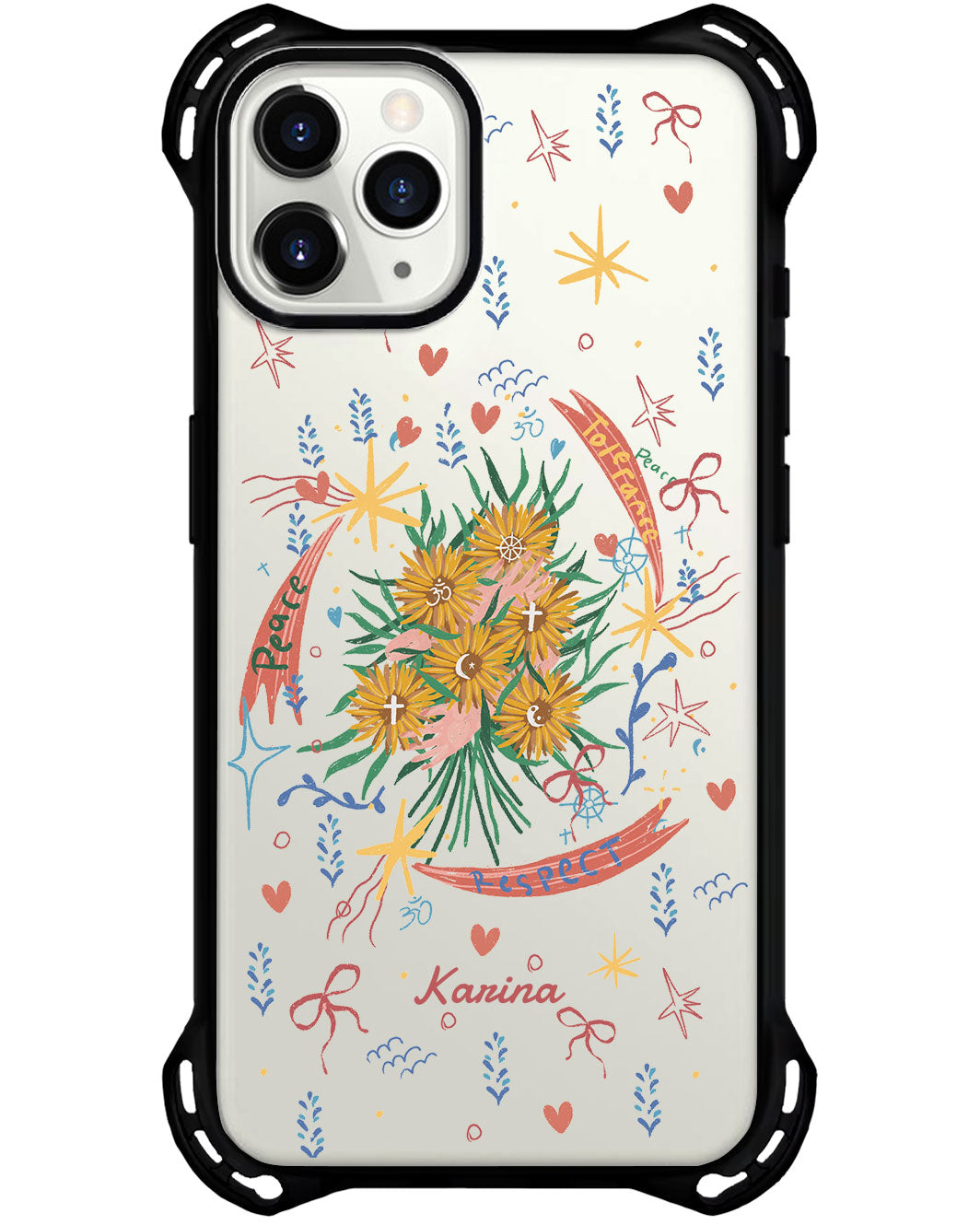 مصدات رائعة في كل زاوية من زواياها الأربع تحميها من السقوط من ارتفاع يصل إلى 5 أمتار! كما أنها معززة بحلقة كاميرا معدنية تحمي عدسات كاميرا آيفون من الخدش. ليس هذا فحسب، بل إن الجزء السفلي من الجراب مُجهز ليتمكن المستخدمون من تعليق سلاسل أو قلادات الهاتف بسهولة.