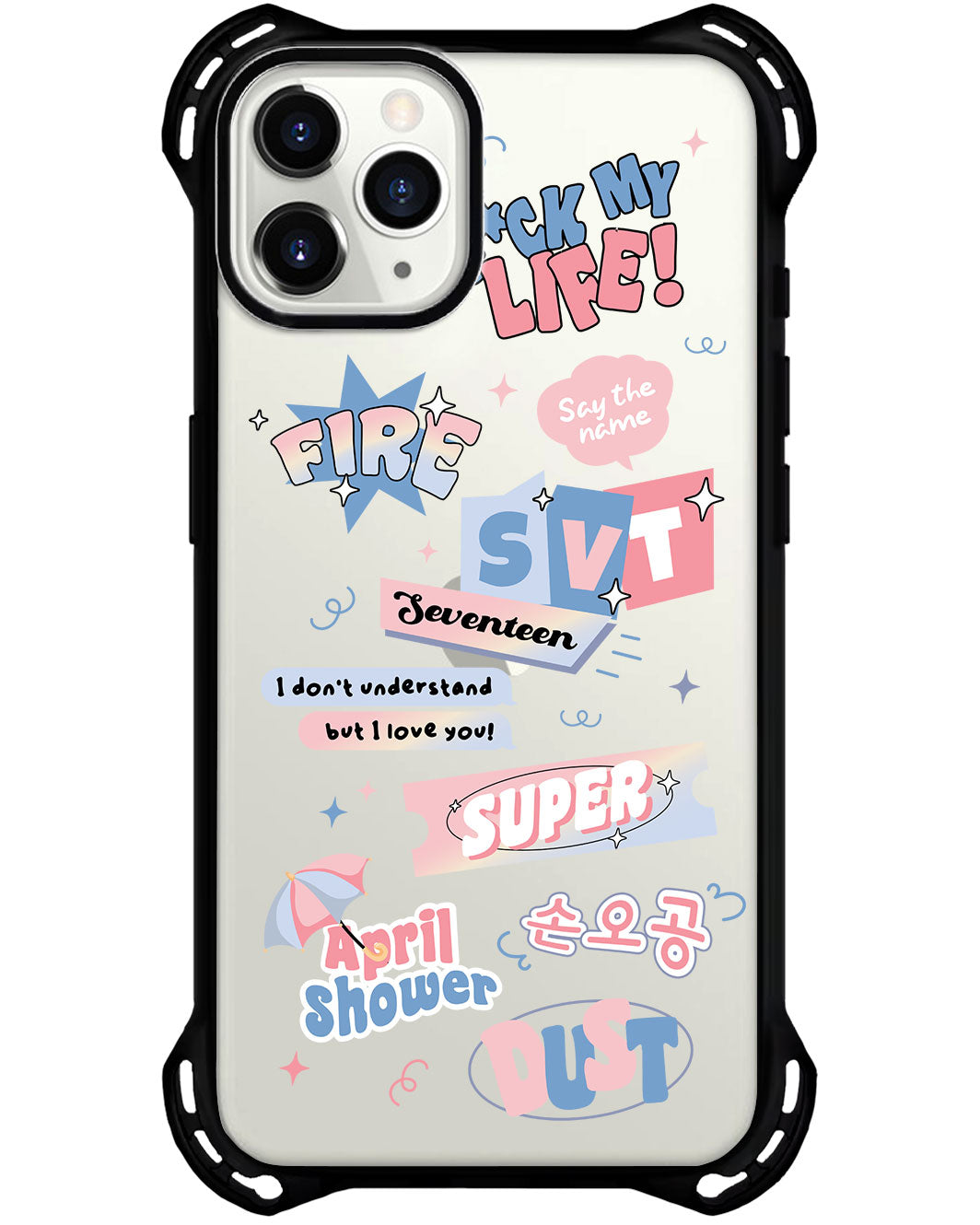 مصدات رائعة في كل زاوية من زواياها الأربع تحميها من السقوط من ارتفاع يصل إلى 5 أمتار! كما أنها معززة بحلقة كاميرا معدنية تحمي عدسات كاميرا آيفون من الخدش. ليس هذا فحسب، بل إن الجزء السفلي من الجراب مُجهز ليتمكن المستخدمون من تعليق سلاسل أو قلادات الهاتف بسهولة.