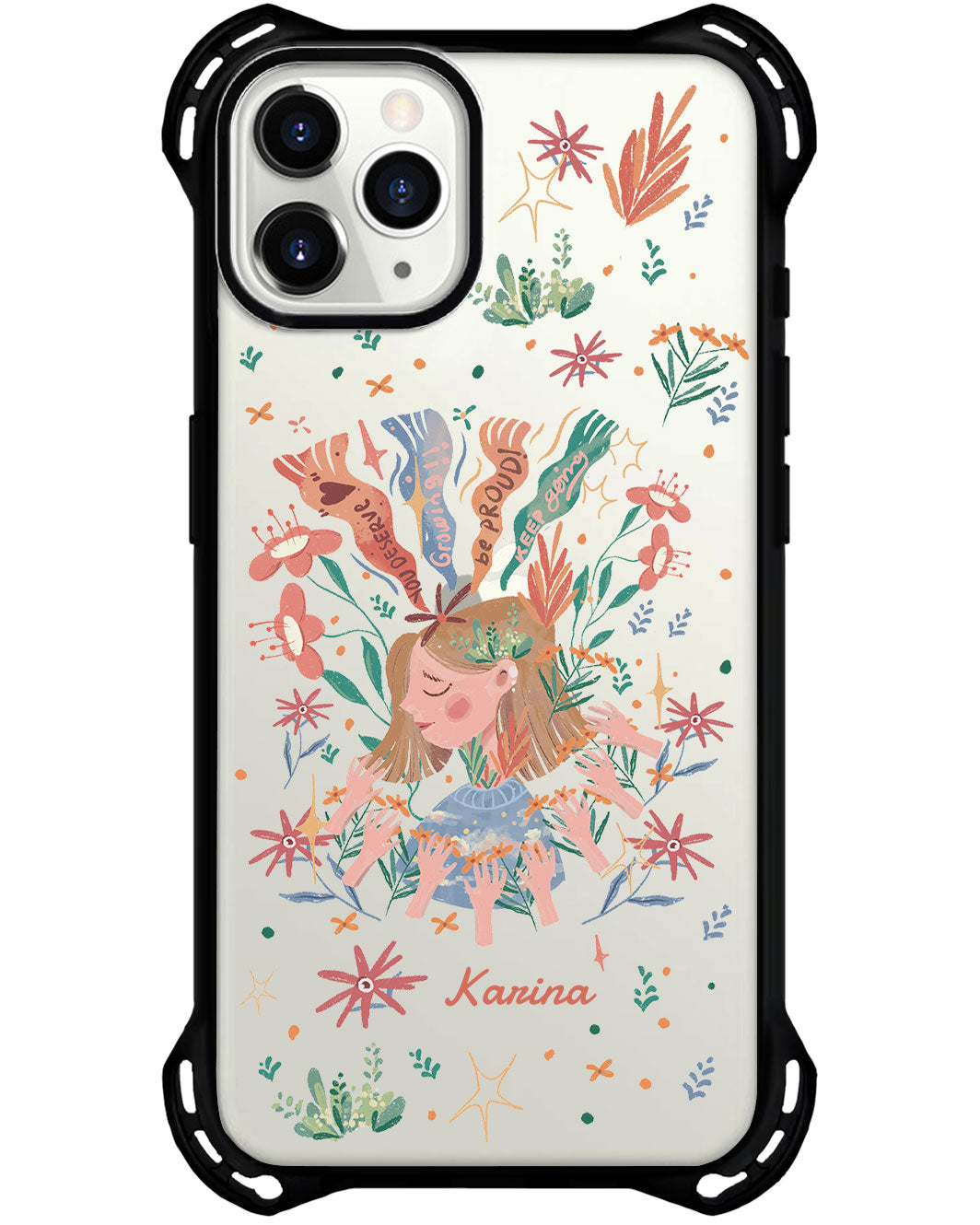 مصدات رائعة في كل زاوية من زواياها الأربع تحميها من السقوط من ارتفاع يصل إلى 5 أمتار! كما أنها معززة بحلقة كاميرا معدنية تحمي عدسات كاميرا آيفون من الخدش. ليس هذا فحسب، بل إن الجزء السفلي من الجراب مُجهز ليتمكن المستخدمون من تعليق سلاسل أو قلادات الهاتف بسهولة.