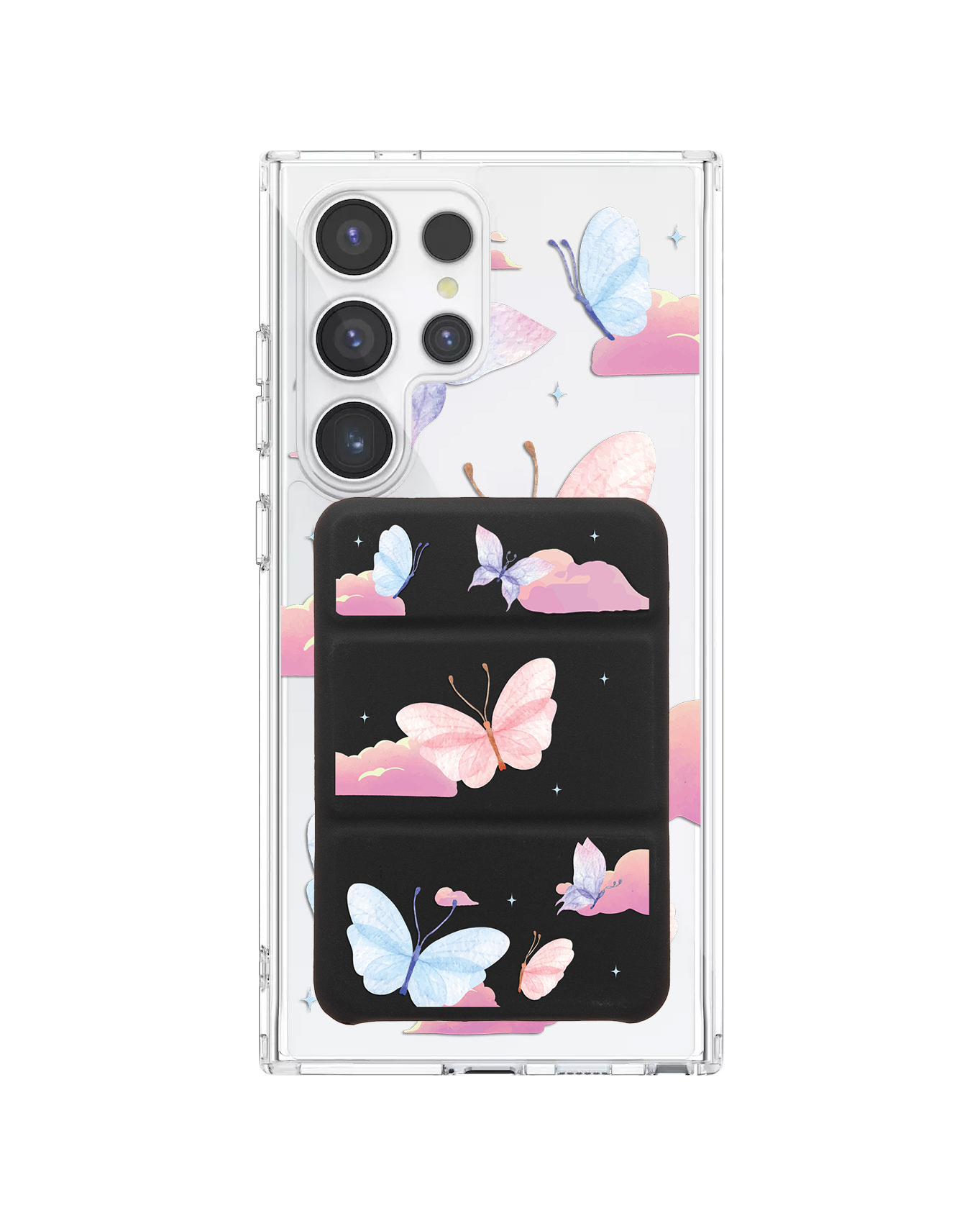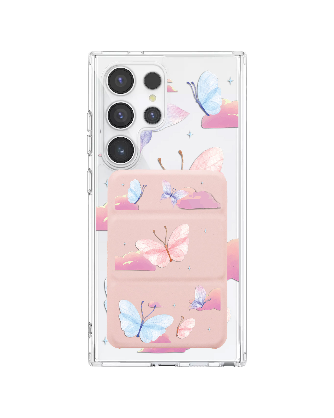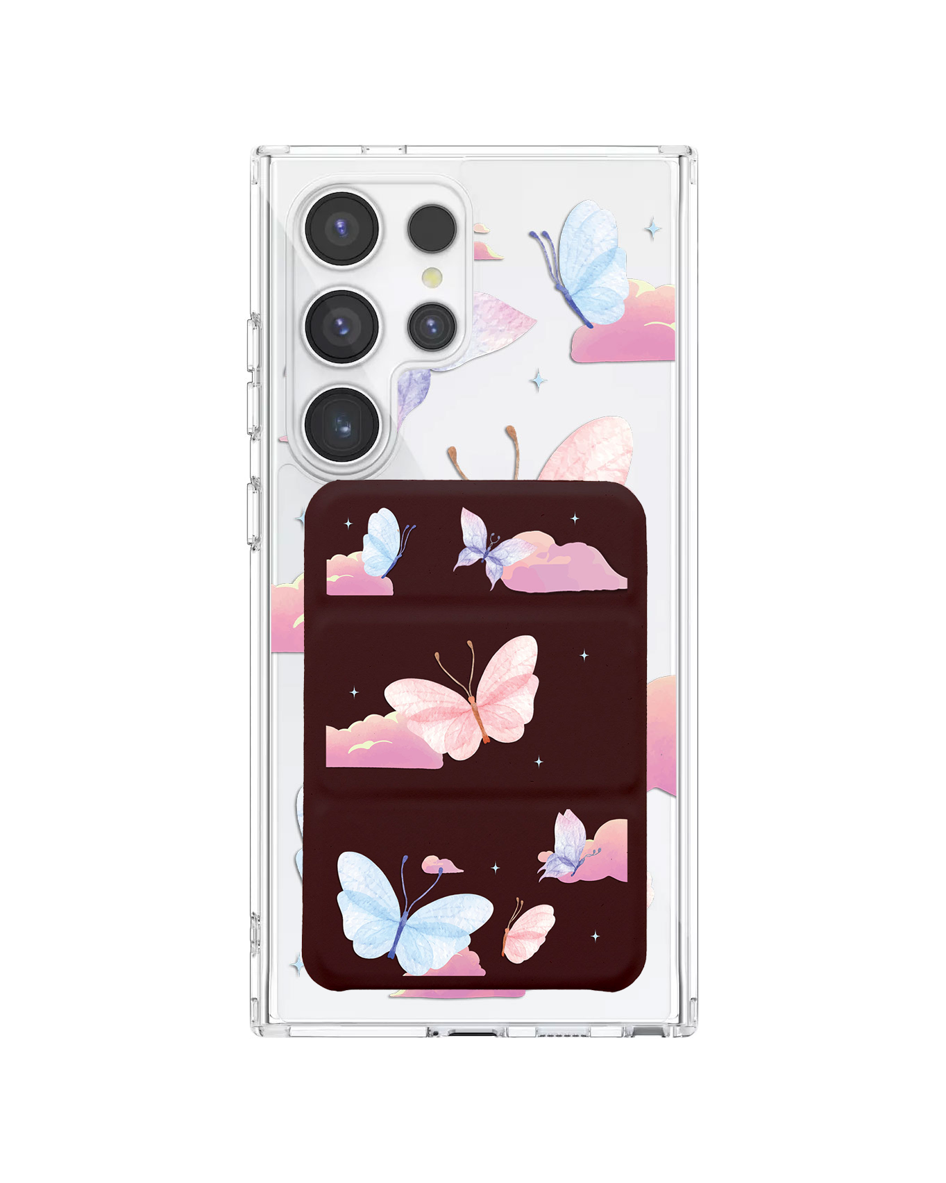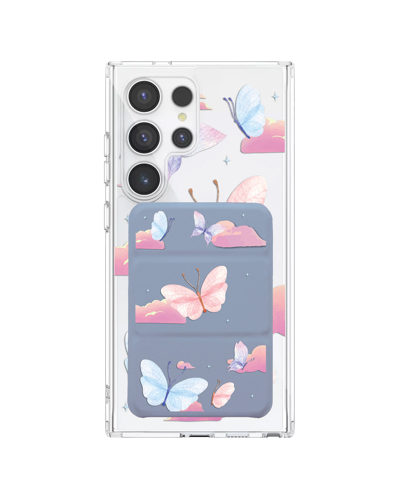 Android Magnetic Trifold Wallet Case - Butterfly & Clouds