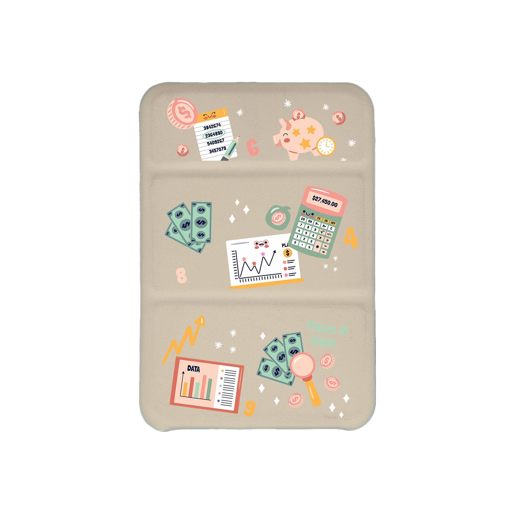Material - soft vegan leather with magnetic, foldable to become a standee.