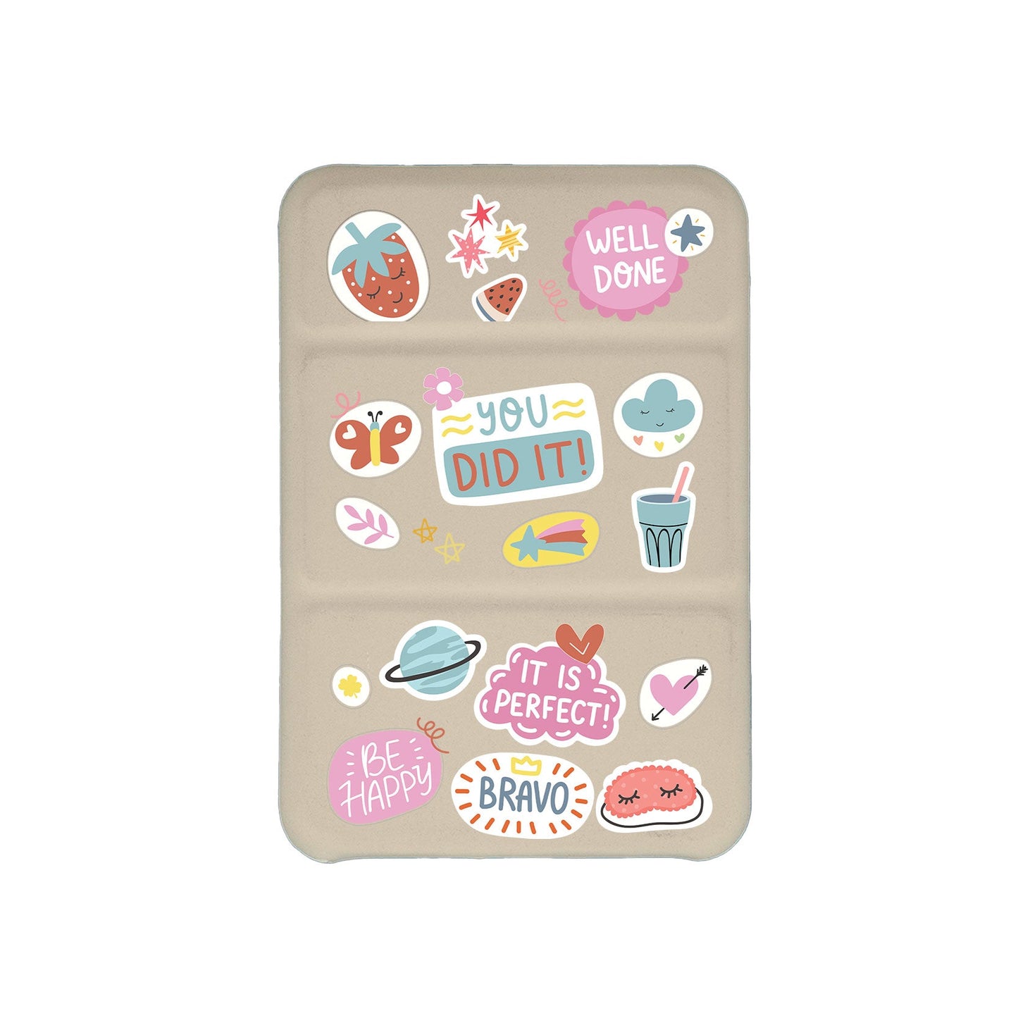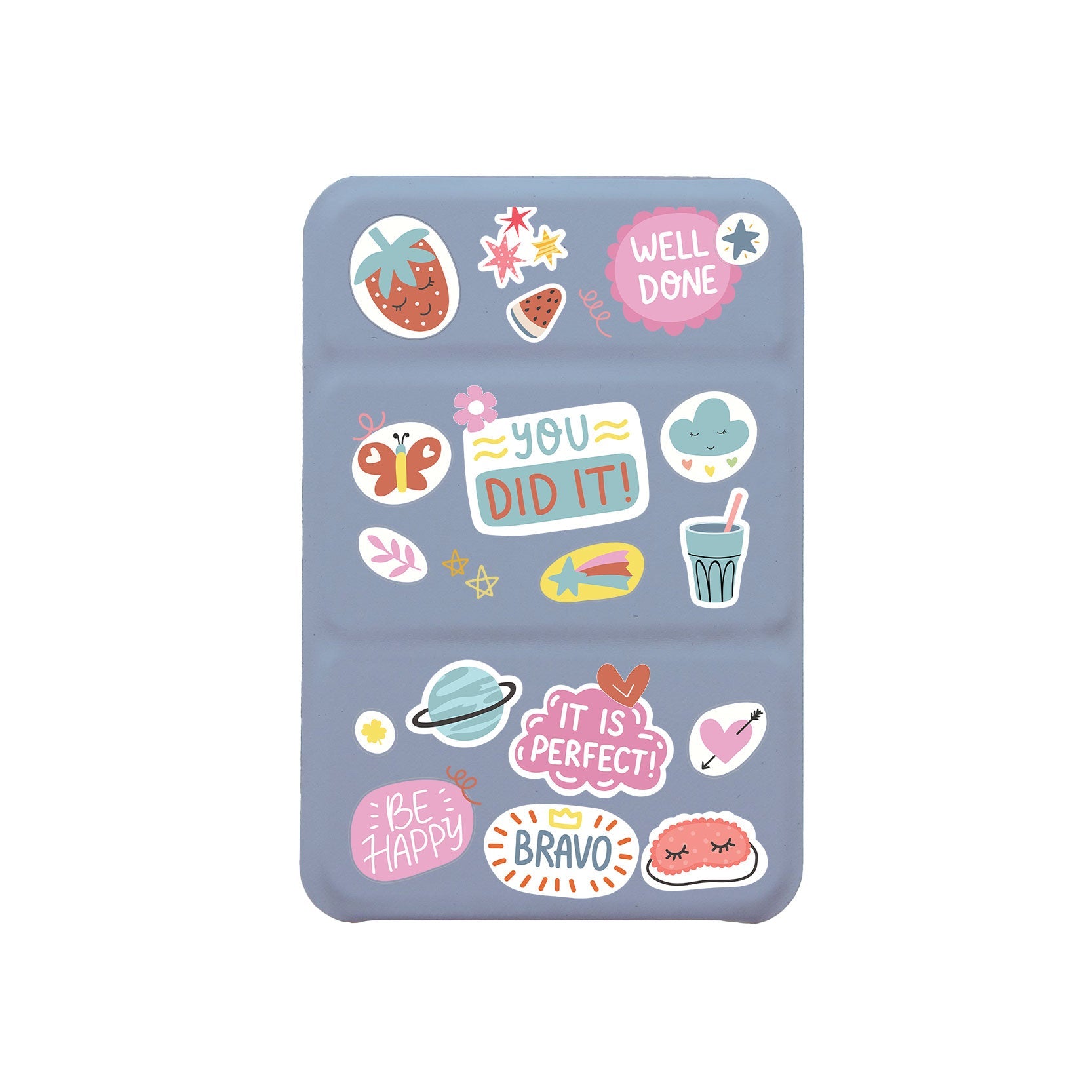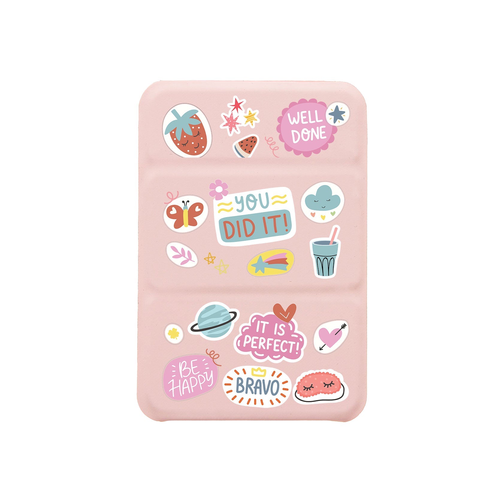 Material - soft vegan leather with magnetic, foldable to become a standee.