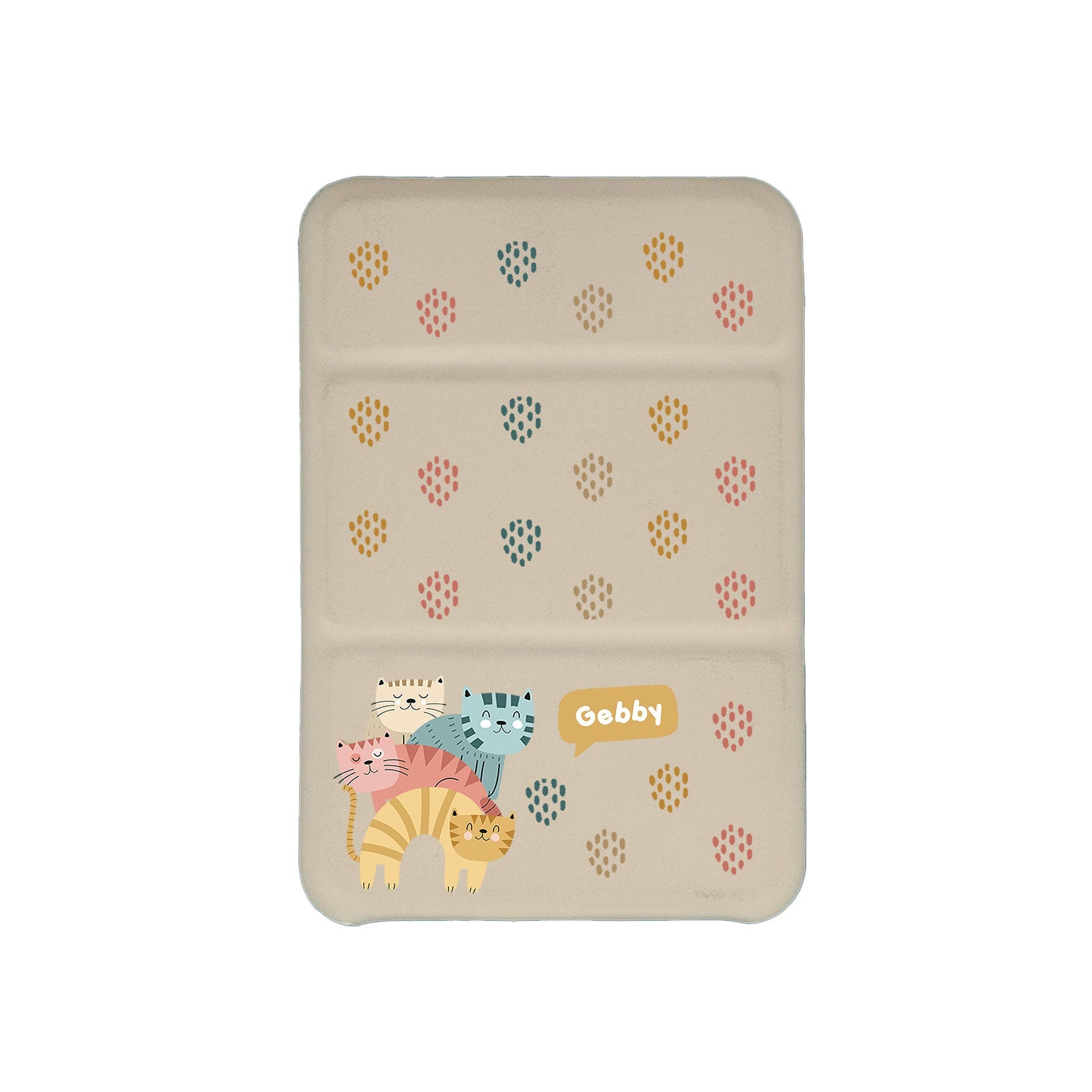 Material - soft vegan leather with magnetic, foldable to become a standee.
