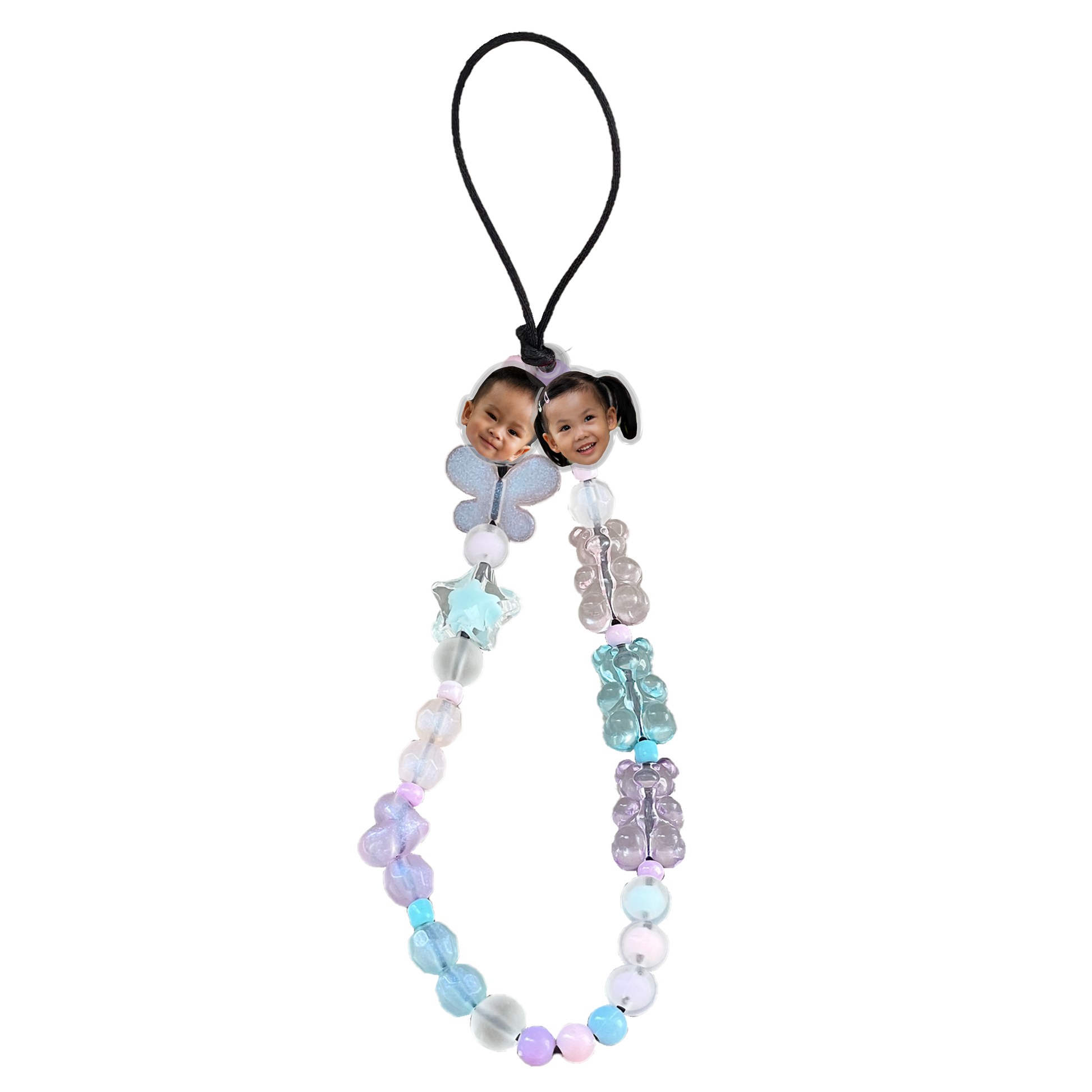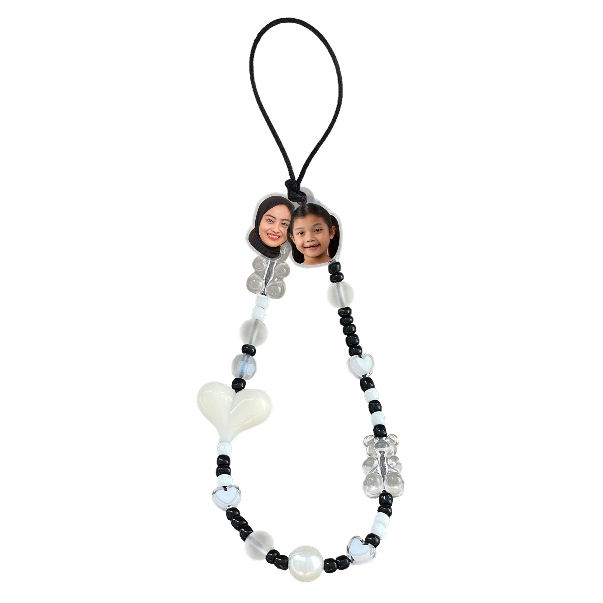 Beaded Strap with Acrylic Charm - Face Grid Cookies & Cream
