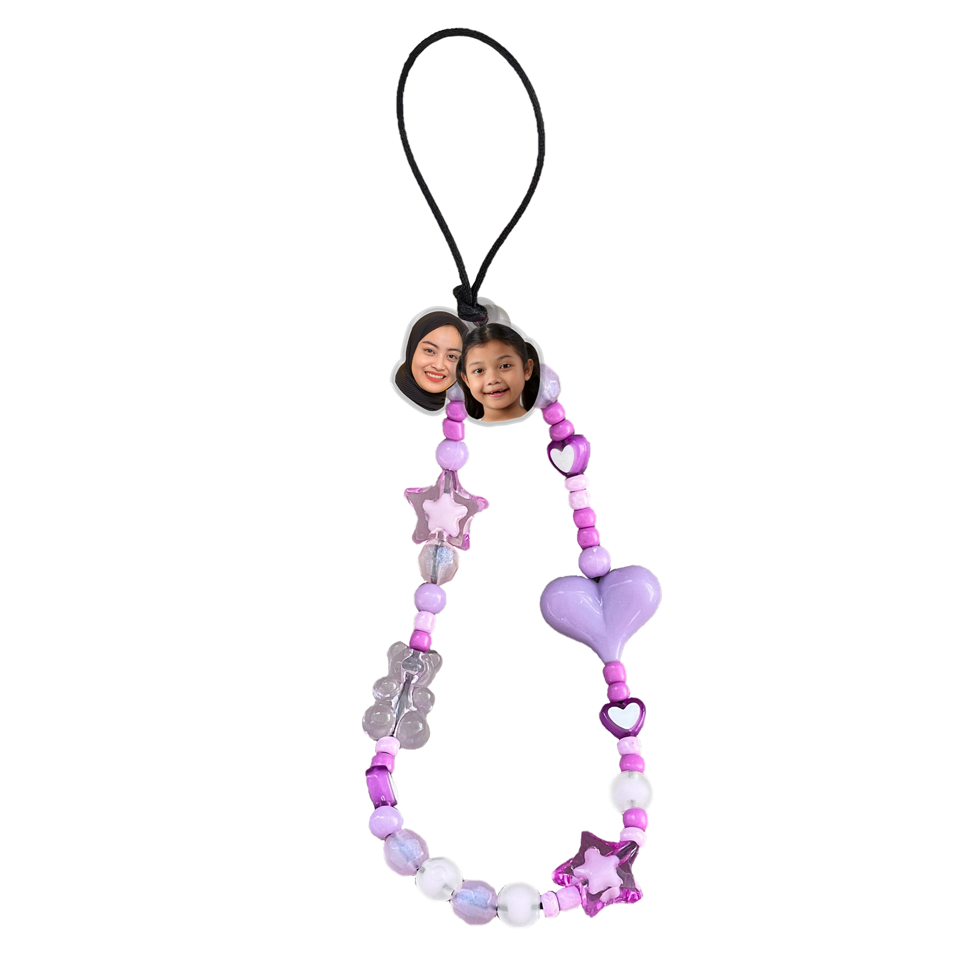 Beaded Strap with Acrylic Charm - Face Grid Ube Purple