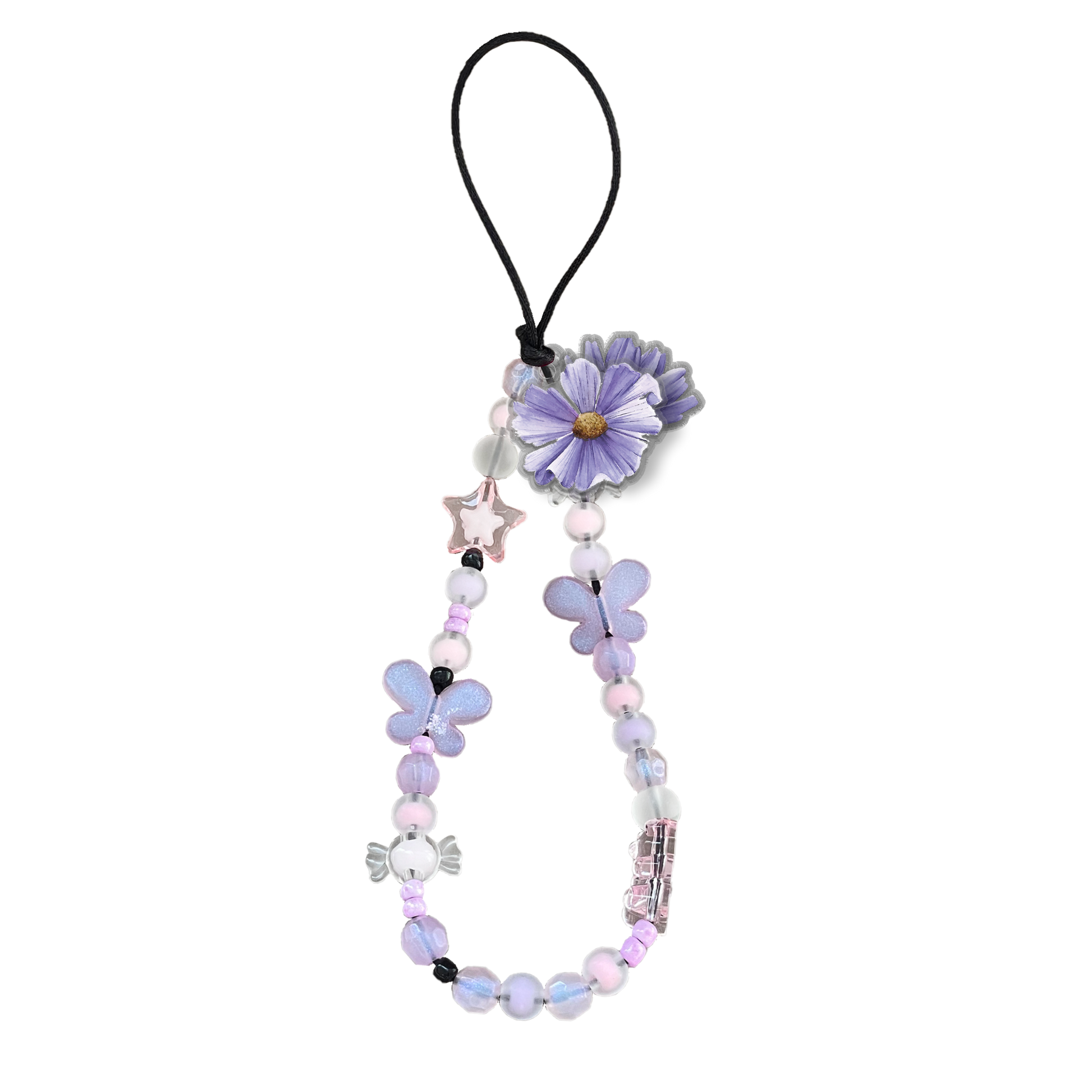 Beaded Strap with Acrylic Charm - February Violets