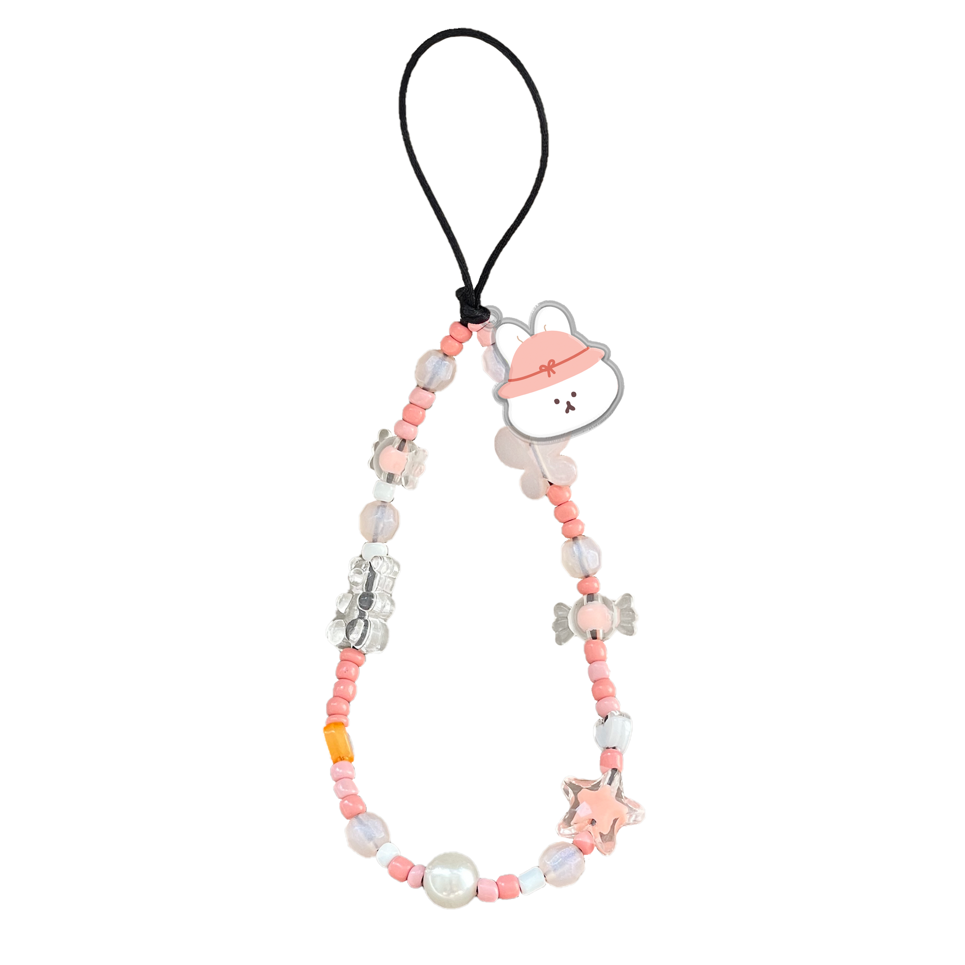 Beaded Strap with Acrylic Charm - Picnic Bear Pink