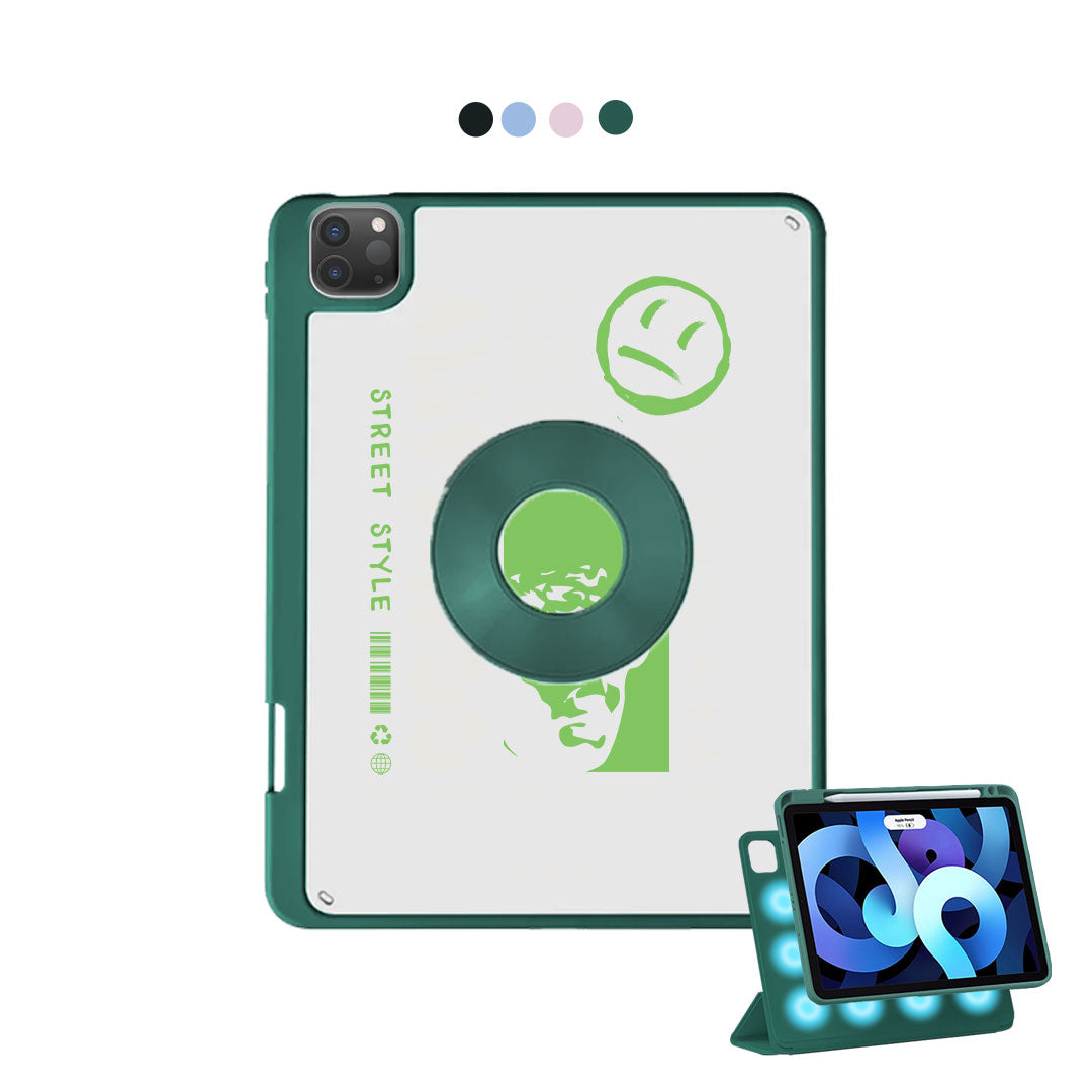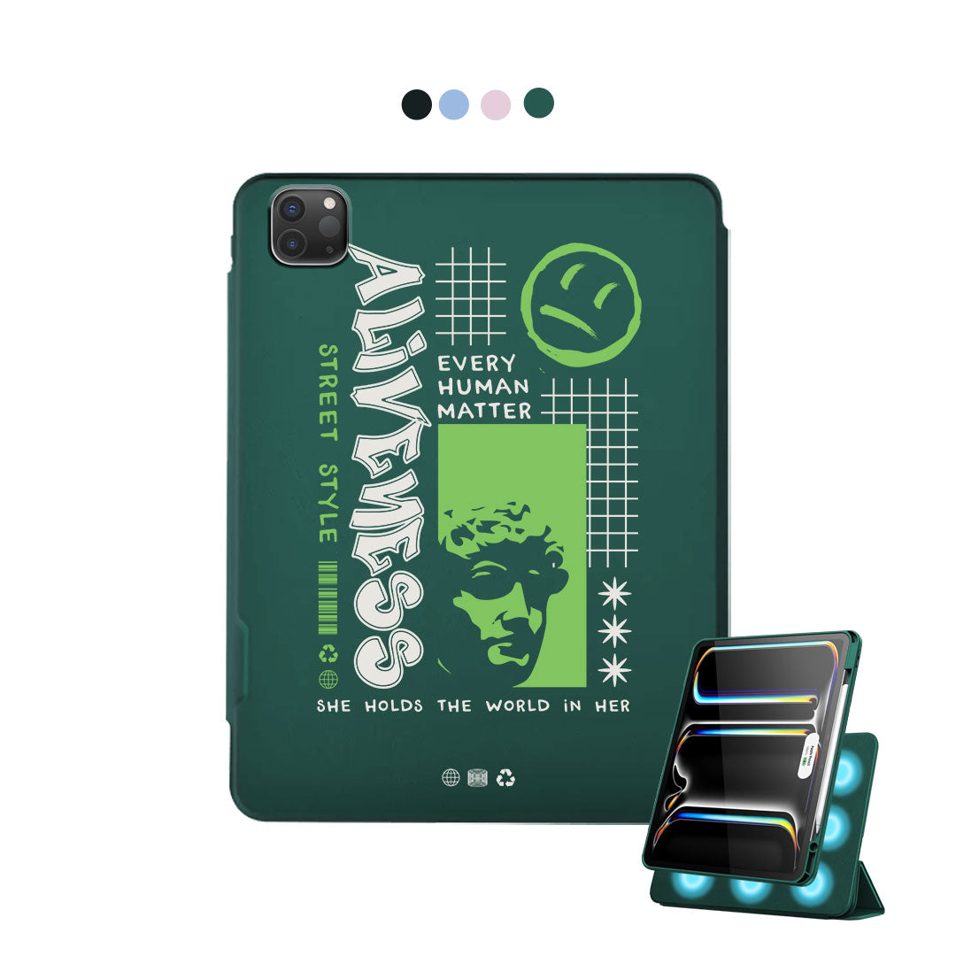 Material - Acrylic backshell with TPU armour on each side for extra protection. Flipcover made of Polyurethene with velvet lining on the inside. Plus, Apple Pen slot ready!