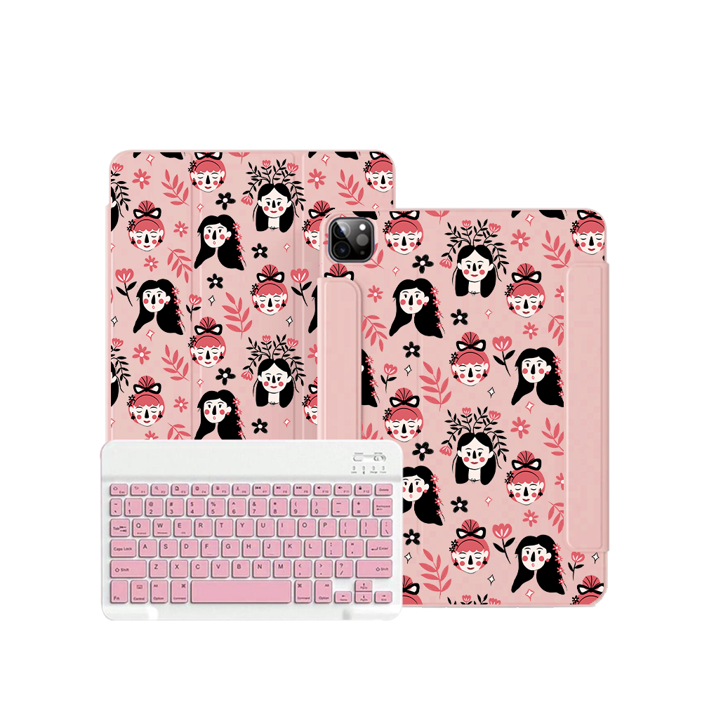 iPad / Android Tab Wireless Keyboard Flipcover - Flowery Faces