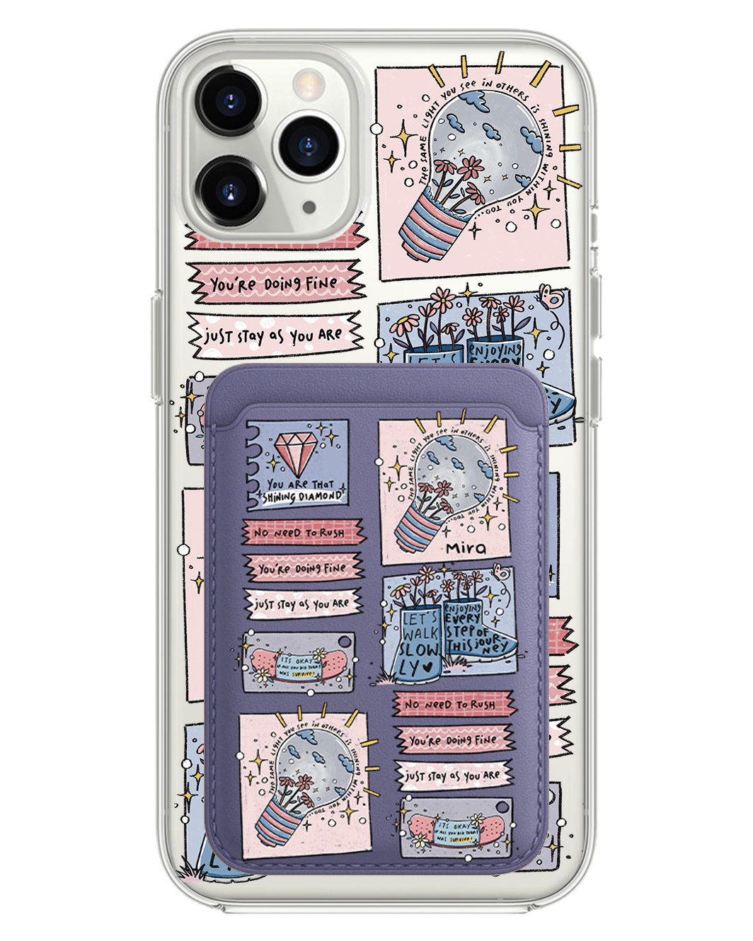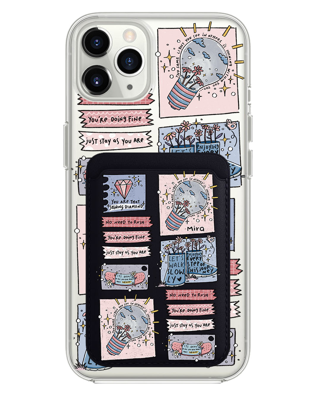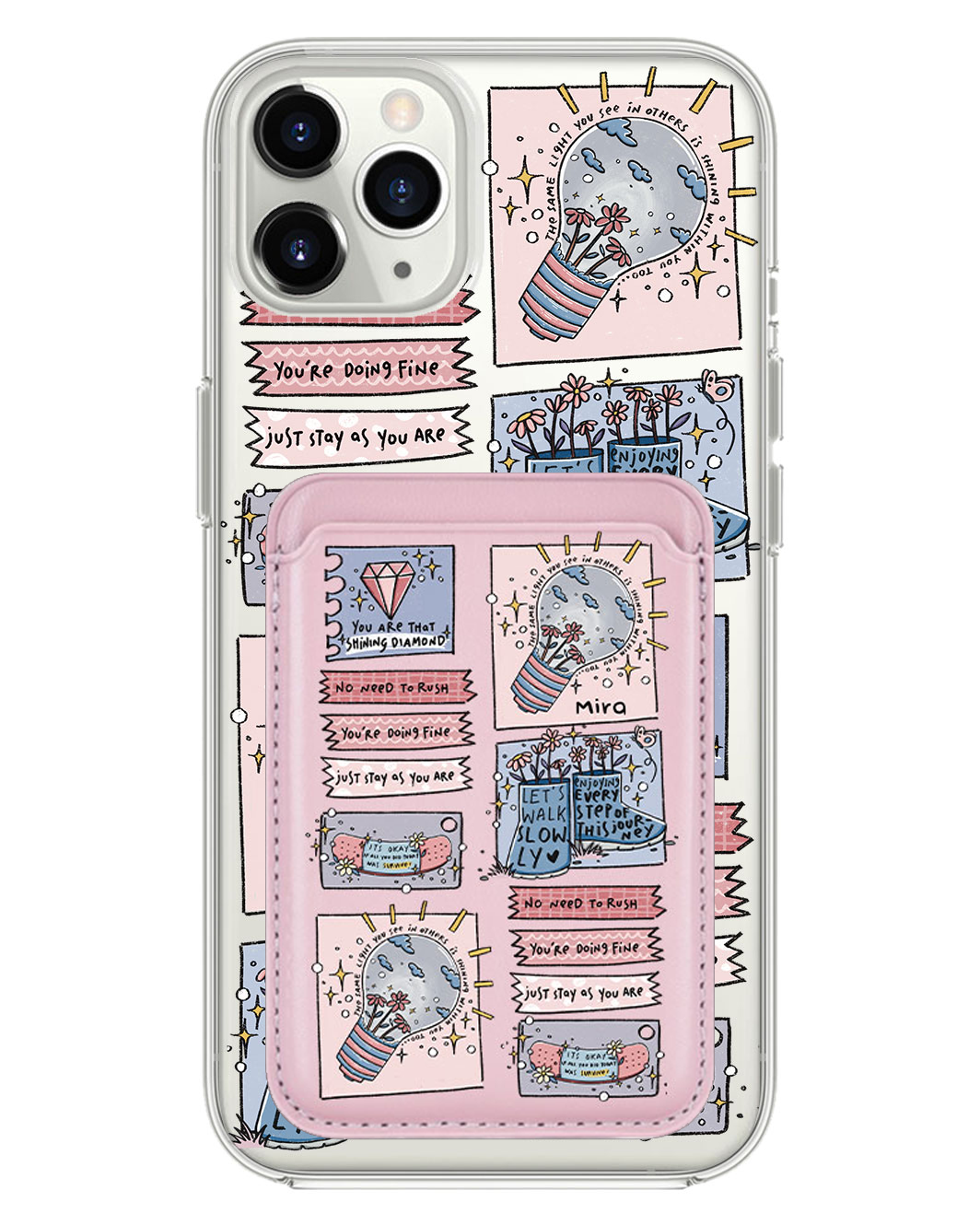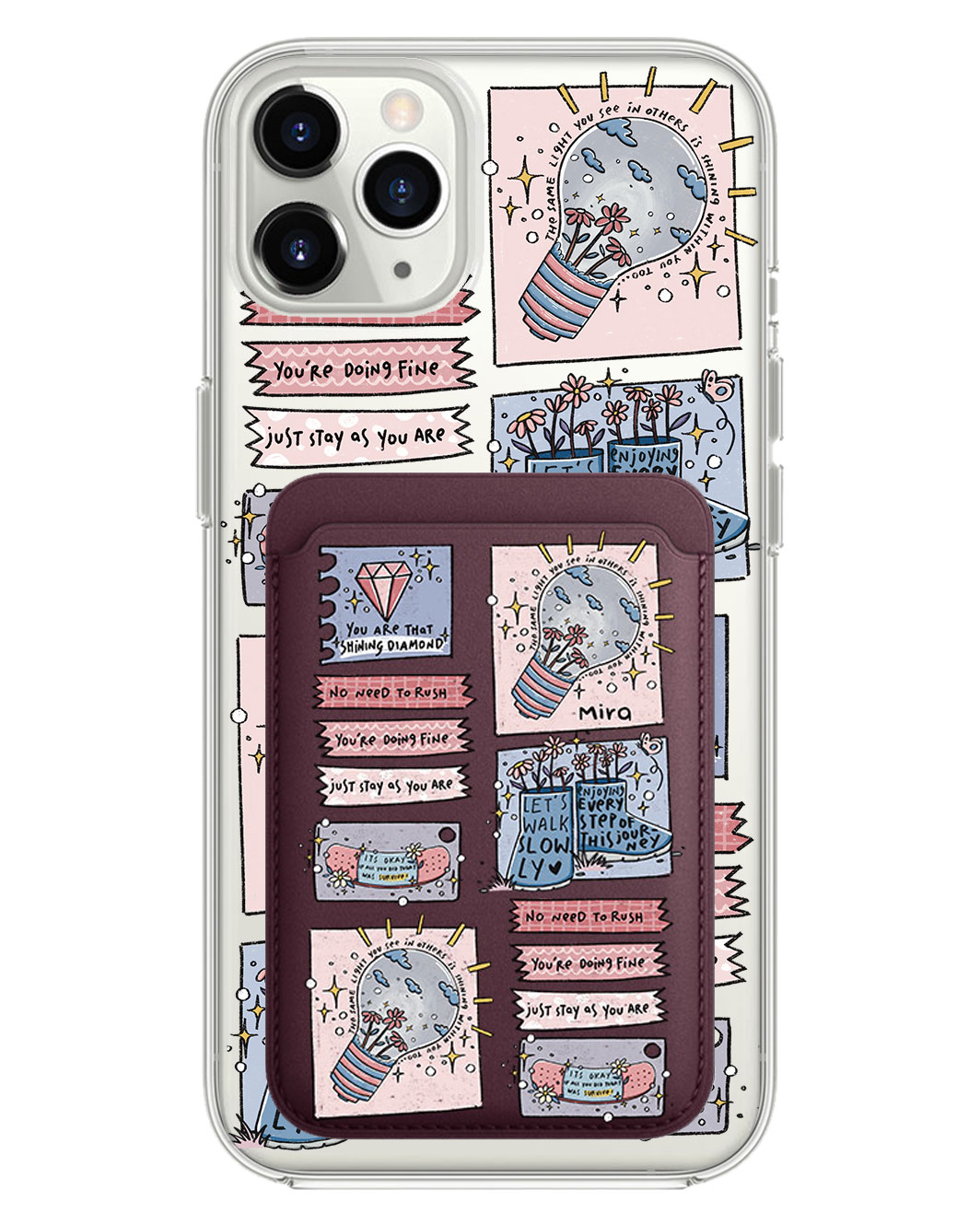 The Magsafe Case is made of Acrylic Back Shell with Soft Silicone Side. Magnetic Wallet is made of soft-textured leather, that accommodates 2 card slot. It is VERY functional to keep your cards and phone in a single grip. Wallet is also built with Anti-RFID material to prevent you from street contactless scamming scheme.