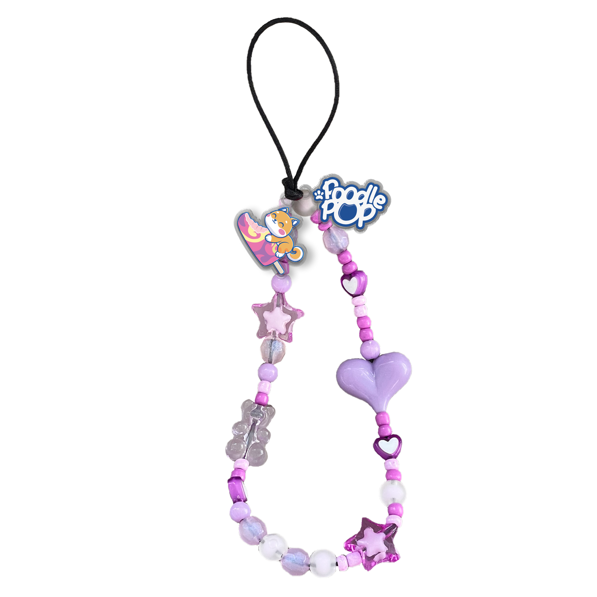 Beaded Strap with Acrylic Charm - Poodle Pop