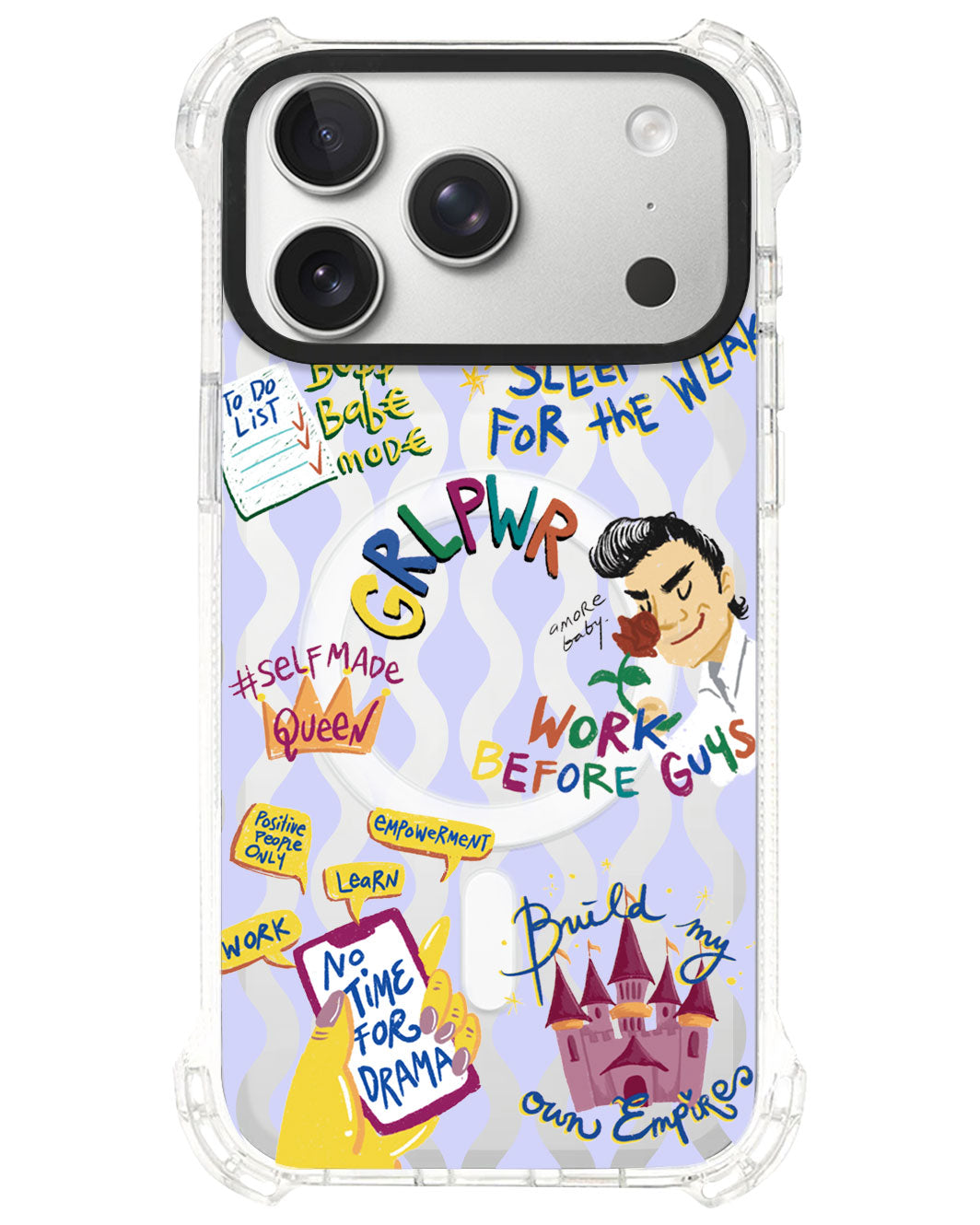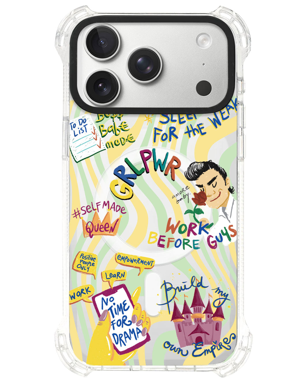 MagSafe-compatible acrylic backplate that can be detached and swapped—perfect for those who love switching up their style!